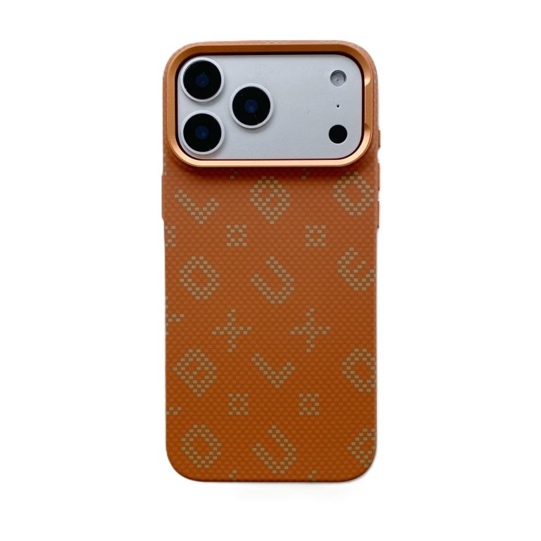 Carcasa Magnetica, Compatibila Apple iPhone 17 Pro, din Fibra de Carbon, Litere Fosforescente, Portocaliu