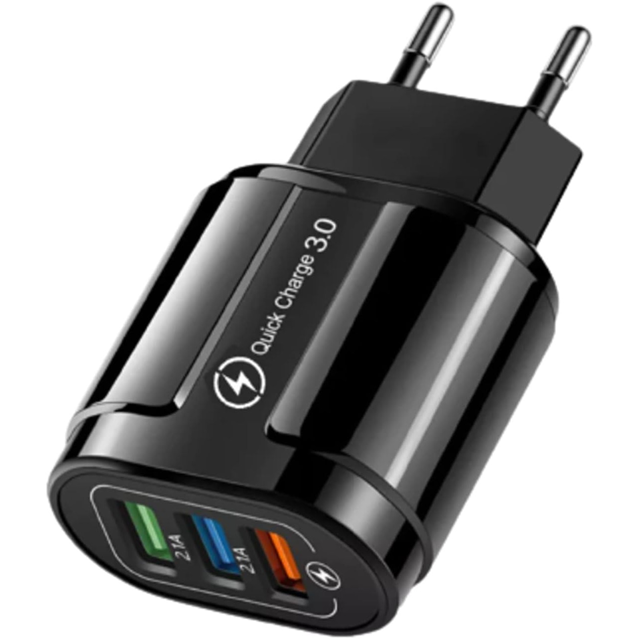 Incarcator Rapid QC3.0, 3 Porturi USB, 2.1A, 18W, din ABS, Protectie Supraincalzire, Gama Macarons, Negru