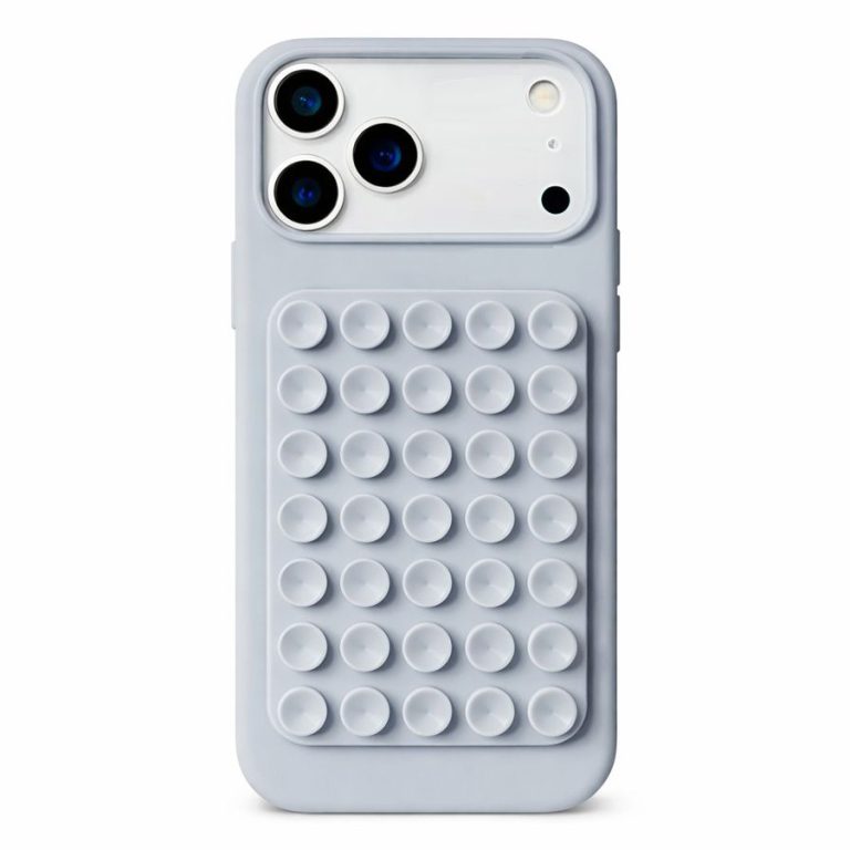 Husa cu Ventuze, Compatibila iPhone 17, din Silicon, Interior Microfibra, Albastru Gri